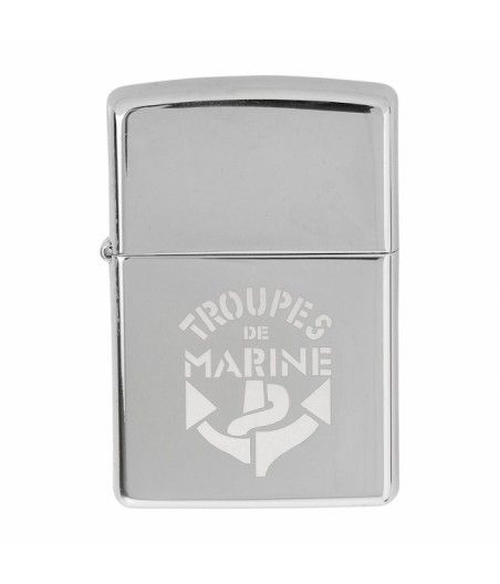 Le célèbre briquet à essence Zippo est gravé Troupes de marine d'un côté. Le briquet Zippo est livré dans une boîte cadeau. Il est garanti à vie.