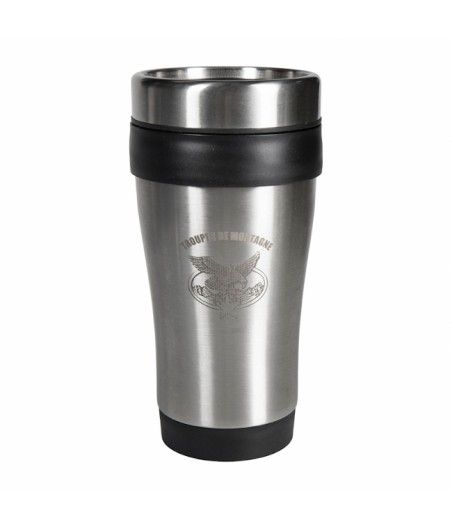 Le mug en inox gravé Troupes de Montagne permet de conserver votre boisson au chaud ou au froid. La contenance de la tasse est de 35 cl.