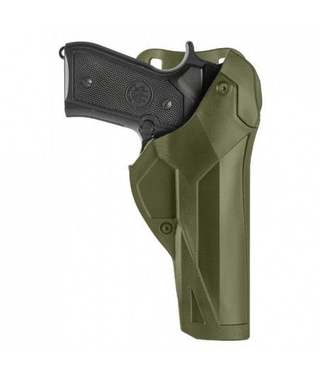 Le holster CAMA DCA8 de Vega Holster a été conçu en plolymère afin de répondre aux conditions extrêmes (abrasion, agents chimiques, au feu). Le holster CAMA est léger, indéformable et ergonomique. Il possède une vis de rétention et un ressort en polymère à friction multiple. Le pouce libère le double mécanisme de sécurité : le premier fonctionne sur la partie supérieure du pistolet; le second travaille directement sur le pontet. Il est adaptable sur toutes les plaques de cuisse et supports de Vega Holster.