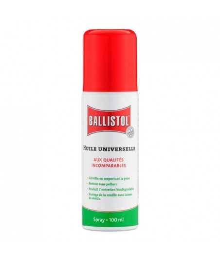 L'huile Ballistol en spray 100 ml protège de la rouille, lubrifie, nettoie, et agit sur les résidus de poudre, les dépôts de plomb, de cuivre et de tombac. Il pénètre dans les plus petites fissures, dissout les résidus et résines provenant de l'usage d'huiles inadéquates. Il neutralise les résidus acides de combustion. idéal pour le soin, la récupération et imprégnation des fûts en bois et des bretelles en cuir.