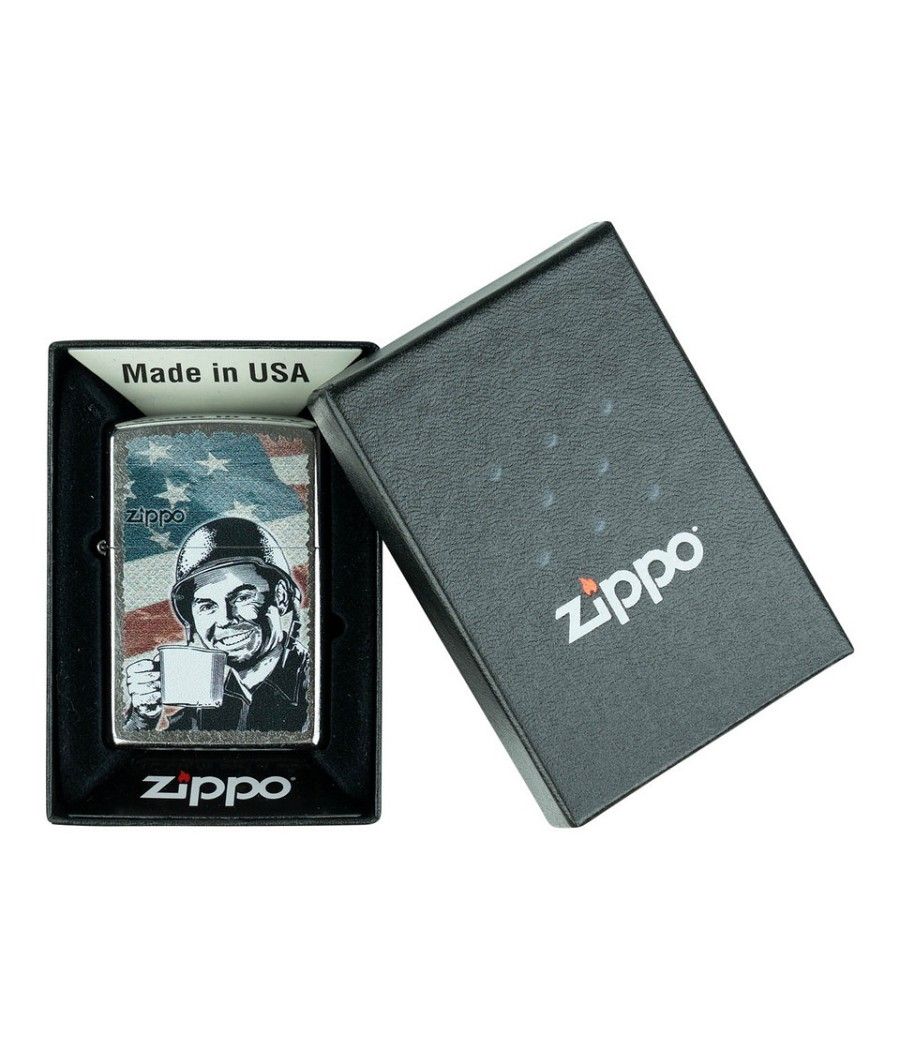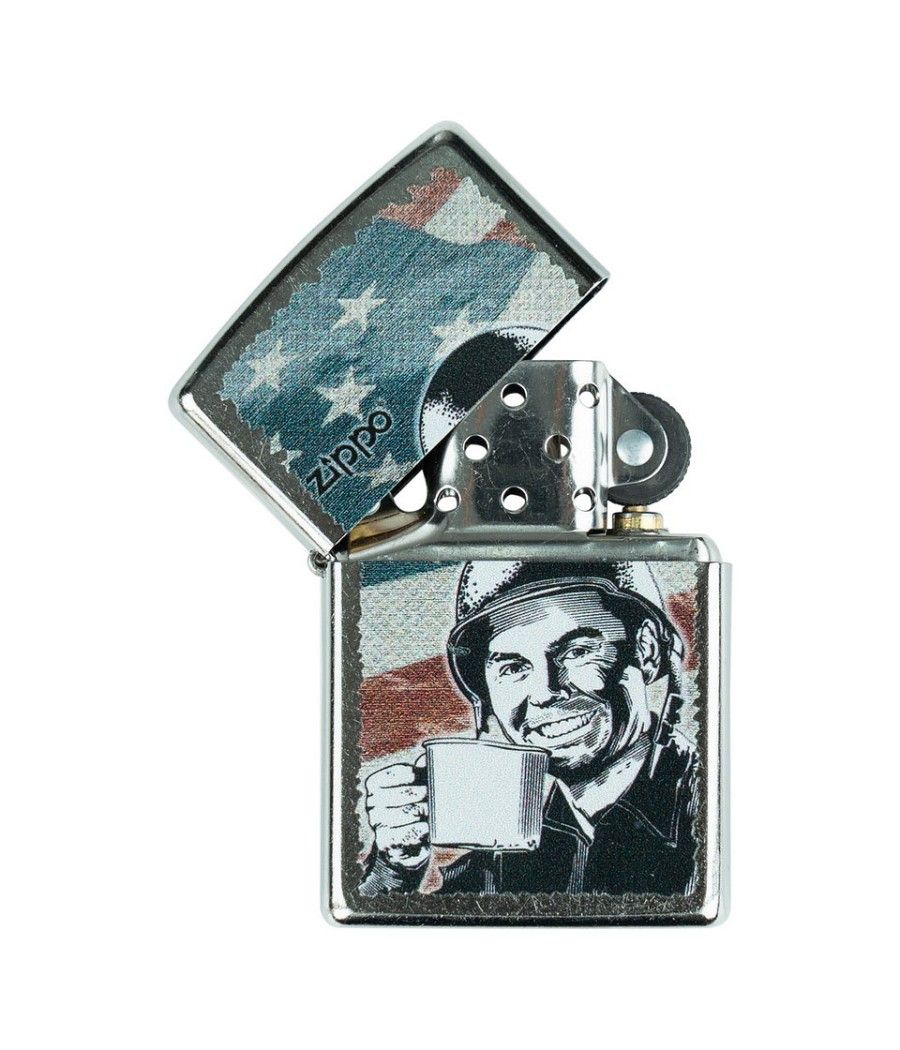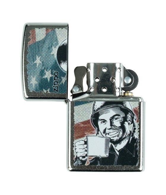 Briquet Zippo Édition Limitée – "G.I. Joe Coffee" : L'Esprit des Soldats en un Objet Culte Découvrez le briquet Zippo "G.I. Joe Coffee", une édition limitée inspirée de l’univers emblématique des soldats américains. Ce modèle rend hommage à la camaraderie et à la persévérance des G.I., avec une illustration vintage évoquant le rituel du café au front, symbole de réconfort et de résistance.