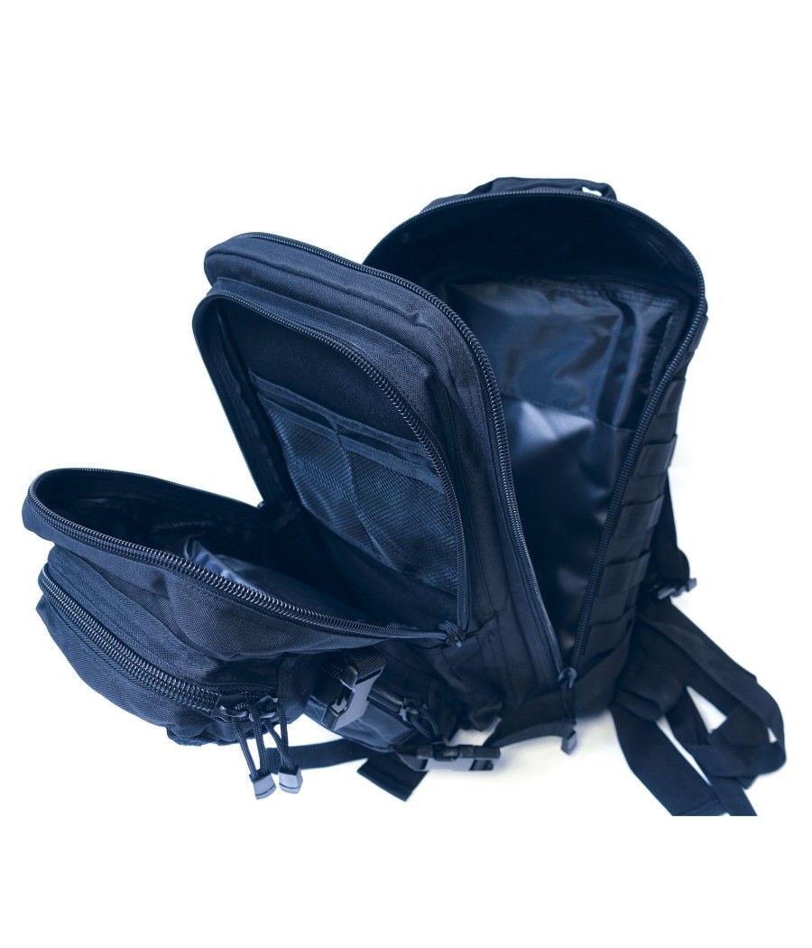 Découvrez le sac à dos Falcon, coloris marine, parfait pour toutes vos aventures. Ce sac à dos de 30 litres offre une capacité généreuse et un agencement optimisé pour un rangement efficace. Il comprend 2 grands compartiments pour transporter vos affaires principales en toute sécurité, 1 poche haute dotée d’attaches Molle en velcro velours pour une personnalisation maximale, 1 poche moyenne basse également équipée d’attaches Molle en velcro velours et 1 poche extérieure discrète placée au dos pour un accès rapide à vos effets personnels.