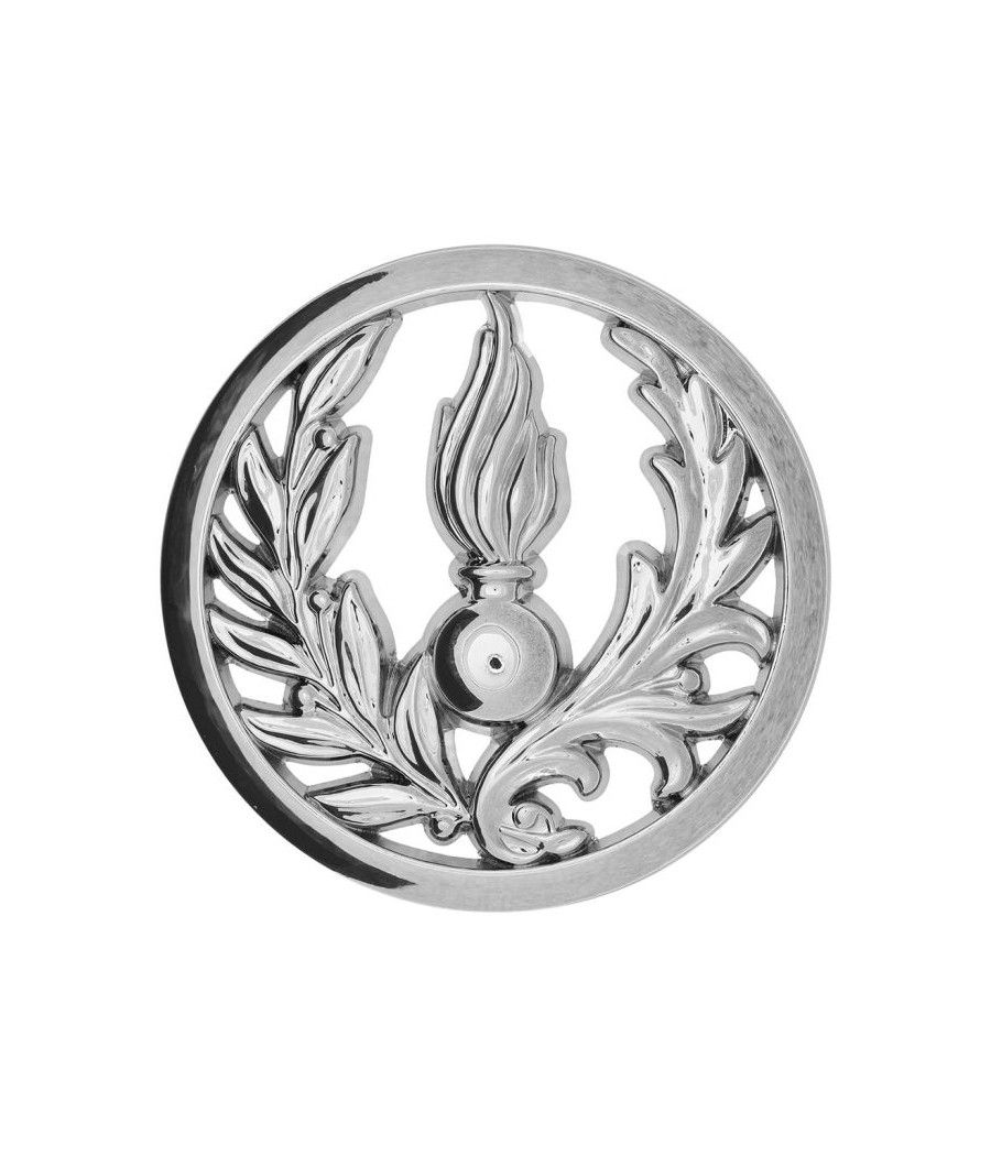 Cet insigne de béret en métal possède la gravure Commissaire argent.