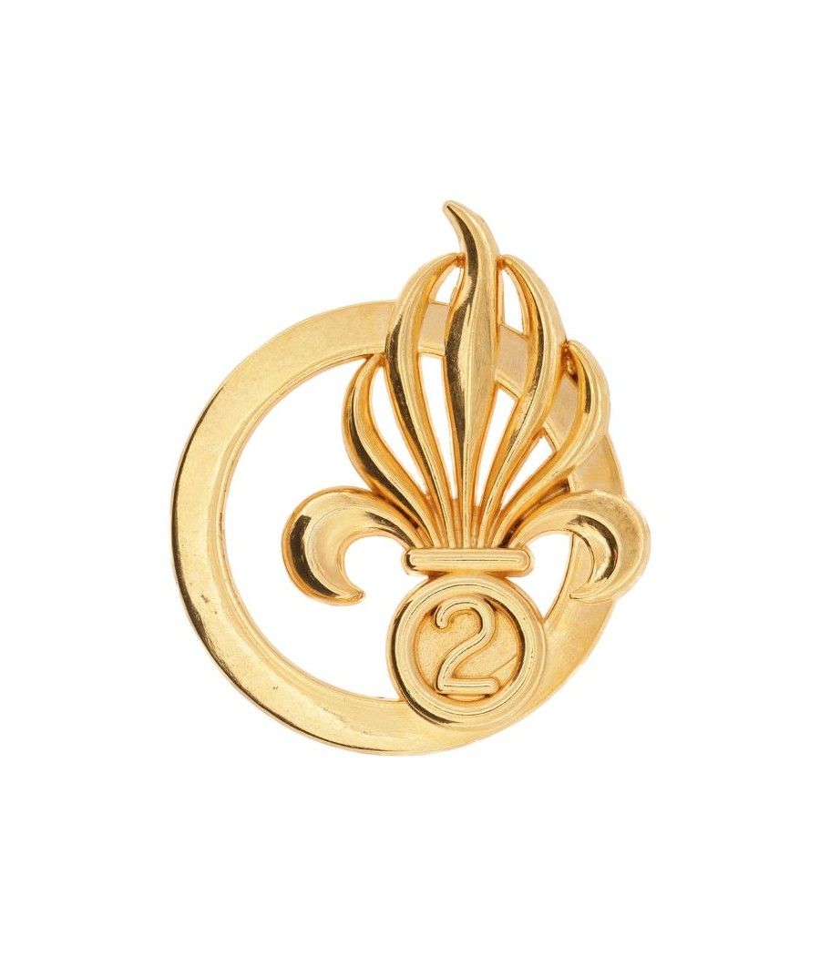Cet insigne de béret en métal possède la gravure 2° REG.
