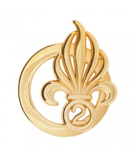Cet insigne de béret en métal possède la gravure 2° REI.