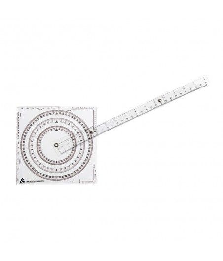 Bras amovible et rotatif avec échelles en mm et 1/25000ème permettant de reporter un cap, une position et une distance jusqu'à 7,5 km