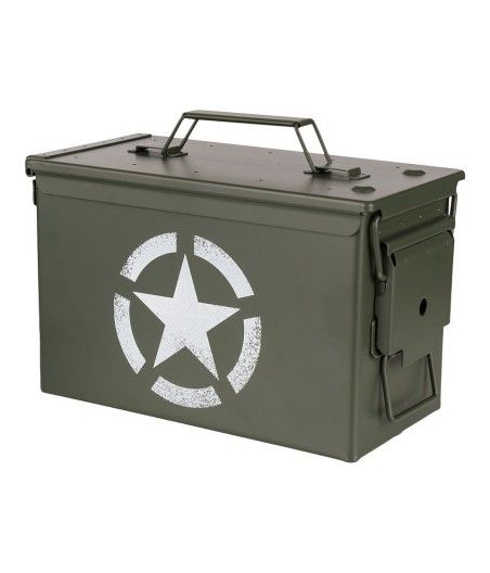 Découvrez la boîte à munitions 50 Cal. avec étoile US Army, un accessoire au design militaire authentique, idéal pour les passionnés de surplus militaire, de militaria, d’airsoft ou de plein air.