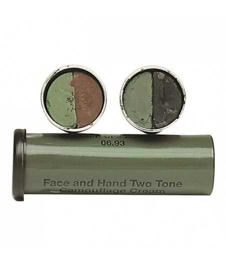 Le stick de maquillage militaire contient 2 couleurs différentes. La crème contient un produit contre les insectes. Le maquillage est résistant à la sueur et s'élimine simplement avec de l'eau et du savon.