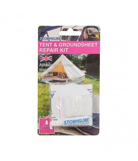 Le kit de réparation sert pour les tentes et les tapis de sol. L'adhésif de réparation flexible Stormsure peut tout réparer, du matériau usé à un grand trou. Les réparations sont étanches, souples et résistantes à l'abrasion (intempéries et abrasion de l'eau).