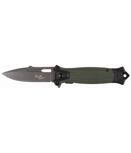 Le couteau pliant Snake kaki se distingue par sa lame grise, partiellement ajourée avec une gouttière, offrant une coupe précise et une légèreté optimisée. L’ouverture assistée par flipper et le repose-pouce rainuré garantissent une maniabilité fluide.