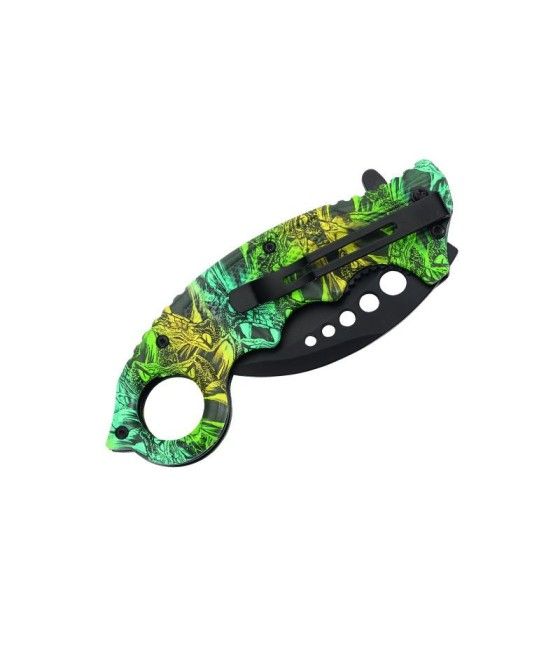Le poignard Storm kaki est équipé d’une lame en acier 3Cr13 avec un tranchant lisse et un dos dentelé, offrant une coupe précise et puissante. Sa garde métallique perforée et son manche en plastique texturé assurent une prise en main sécurisée.