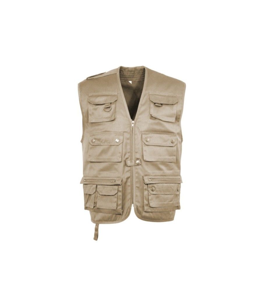 Le gilet reporter beige est conçu en 65% polyester, 35 % coton. Avec ses 9 poches extérieures et ses 4 poches intérieures, ce gilet se montrera indispensable pour vos activités de plein air.