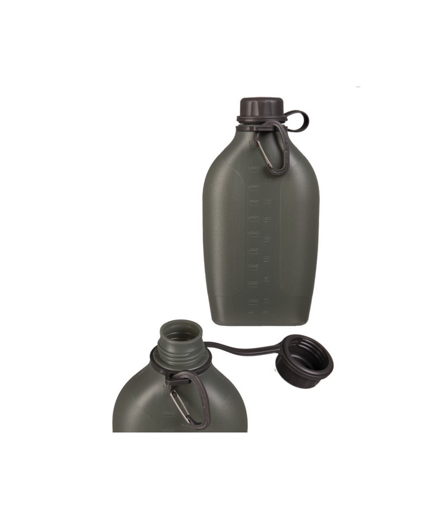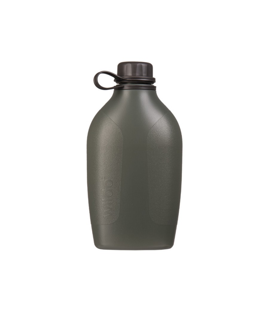 La gourde Explorer de Wildo® possède un mousqueton pour la fixation et une échelle de mesure. Son couvercle est fixé à la bouteille par une dragonne.