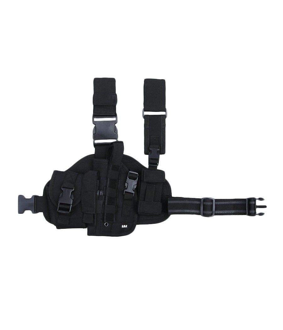 Cet holster de cuisse militaire complet pour gaucher convient à toutes les armes courtes et courantes. Il possède un porte chargeur sur l'avant.