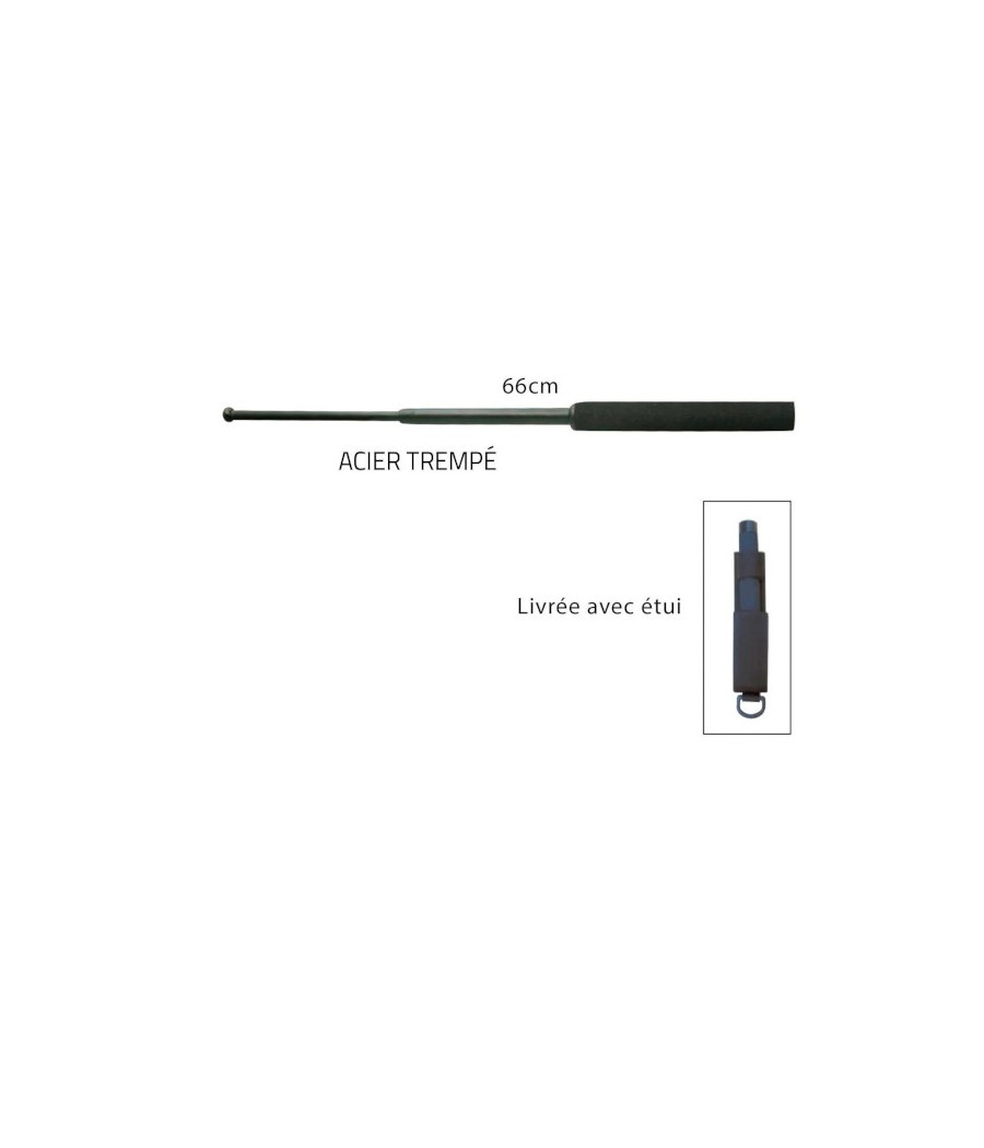 MATRAQUE TELESCOPIQUE ACIER TREMPE MANCHE MOUSSE