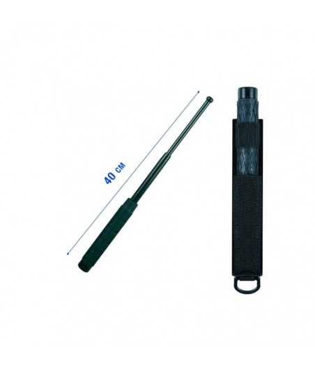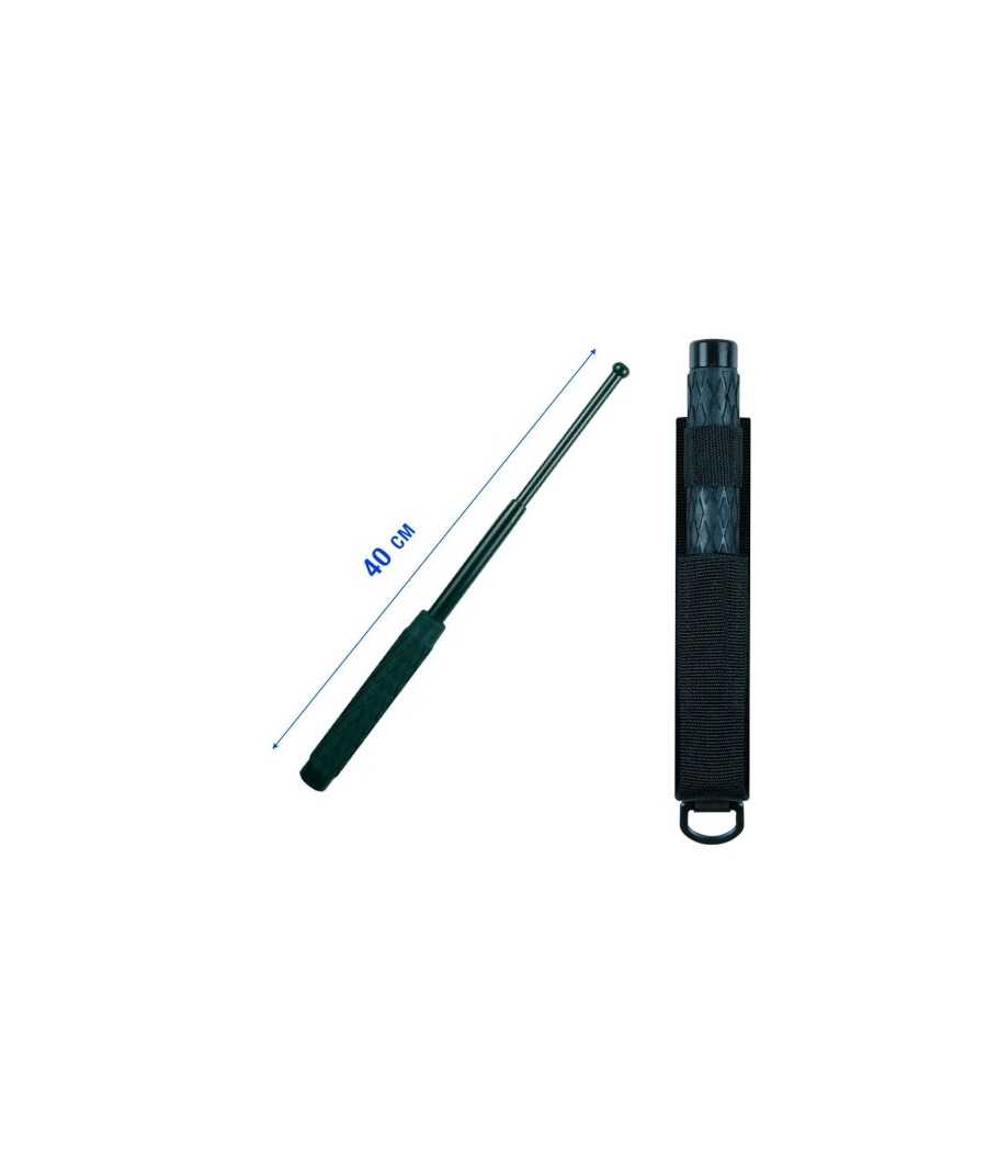 Le bâton de défense télescopique possède un manche gaine antidérapant. Il est livré avec un étui en nylon.