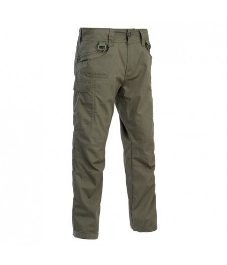 Le pantalon tactique Predator de Defcon 5, coloris olive, répond à tous les besoins courants requis dans le domaine tactique.La taille est réglable au moyen d'une sangle interne avec fermeture Velcro et les passants de ceinture permettent l'utilisation de ceintures tactiques.A la taille, à l'avant, deux anneaux en D en polymère résistant sont fixés, utiles pour la fixation des crochets.Les poches avant sont renforcées d'une couche de Cordura pour ancrer les clips (couteau, outils, etc ...).téléphone de poche à profil bas et grandes poches sur les jambes pour le transport d'objets personnels.La largeur du pantalon, à la hauteur des chevilles, est régulée par une sangle, ce qui permet une utilisation confortable du produit à la fois avec une chaussure de sport ou avec une botte.