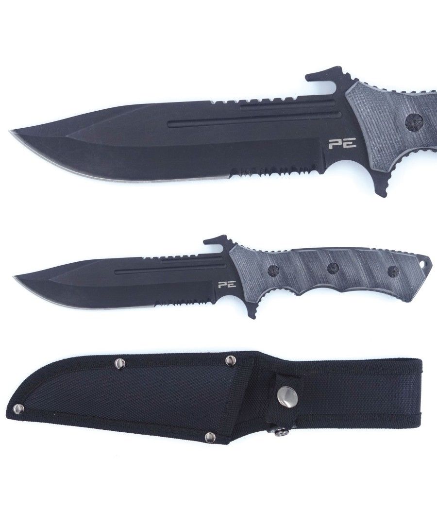 Ce poignard de 29 cm, signé Patrol Equipement, se distingue par son manche noir en fibre de verre G10 : ultra-solide, durable et résistant à l’humidité.