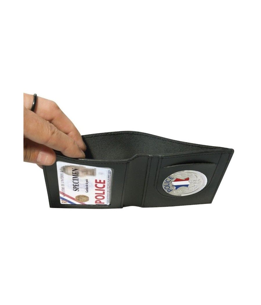 Le porte carte vertical en cuir pour la police possède un emplacement pour carte professionnelle, pour votre CB et les billets.