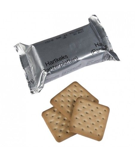 Les gâteaux secs de survie sont conçus en farine de froment. Leur composition et l'emballage prolongent la durée de conservation des gâteaux et sont protégés de l'humidité, du chaud, du froid et des rongeurs.
