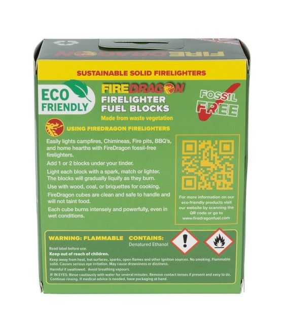 Les 12 blocs de combustible Firedragon s’enflamment rapidement, même lorsqu’ils sont mouillés. Inodore, non toxique et à combustion propre, ce carburant de nouvelle génération est aussi sûr qu’efficace, tout en respectant l’environnement.