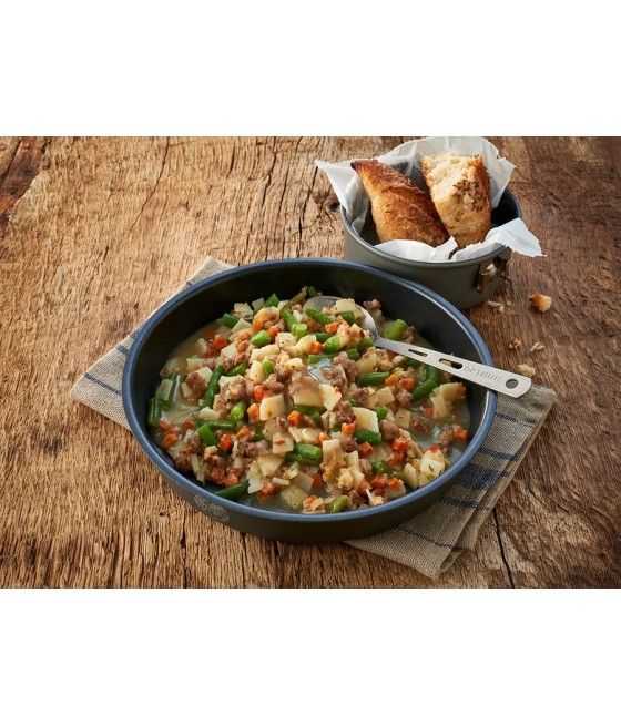 Ce plat constitue un excellent apport énergétique pour les activités comme la randonnée, le trek ou le bivouac. Léger et compact, il se transporte facilement dans un sac à dos et se prépare directement dans le sachet.