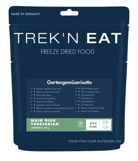 Le risotto aux légumes du jardin Trek’n Eat est un repas lyophilisé végétarien inspiré des recettes traditionnelles italiennes. Ce plat associe riz rond et légumes variés pour un repas équilibré et savoureux lors de vos activités outdoor.