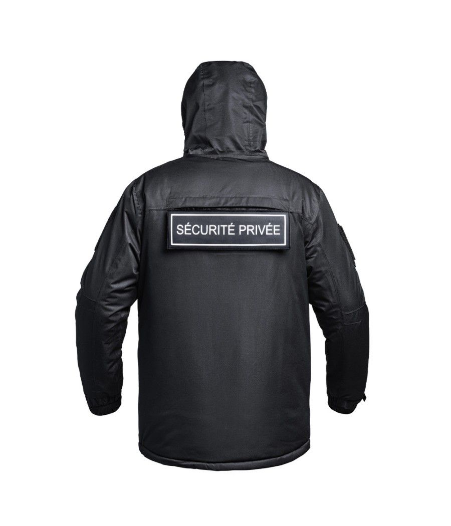 - 2 patchs amovibles "SÉCURITÉ PRIVÉE" blanc rétro-réfléchissant (dos = L. 30 x H. 9 cm / poitrine = L. 13 x H. 5 cm) inclus