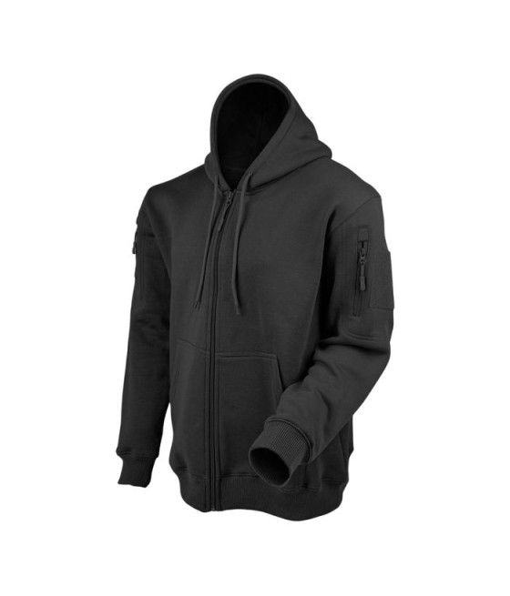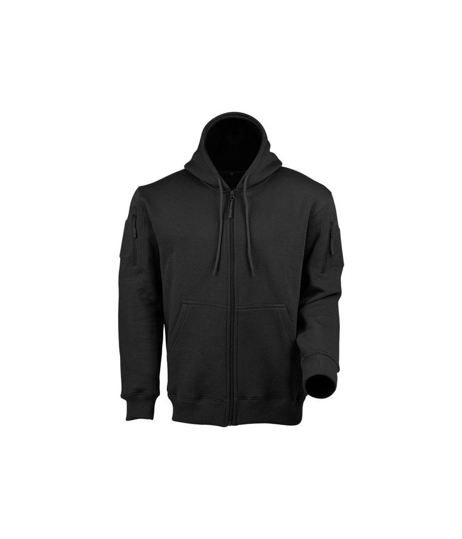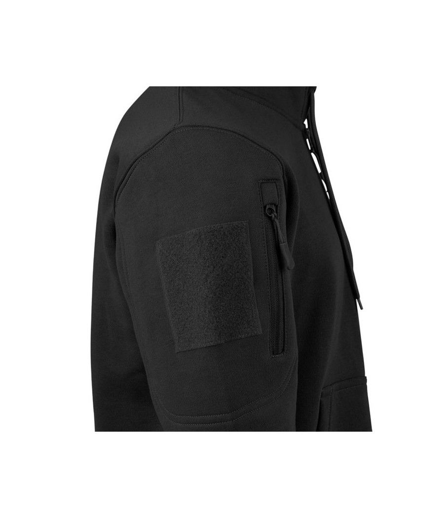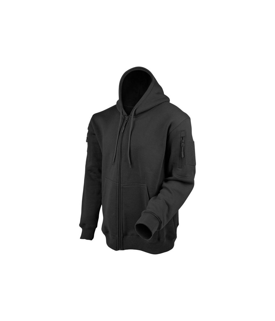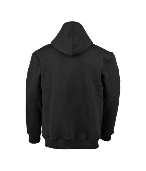 Ce sweat à capuche zippé noir ARES, en polycoton 350 g/m², combine confort et résistance pour une protection optimale contre le froid. Fonctionnel, il intègre des poches zippées et des carrés auto-agrippants sur chaque manche, idéaux pour y fixer vos écussons ou patchs.