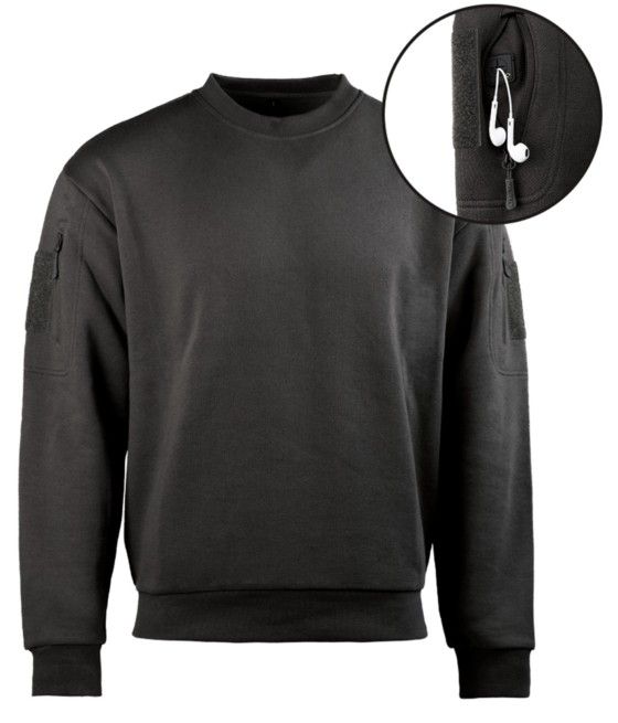 Ce sweat-shirt tactique noir offre un envers chaud et moelleux pour un confort absolu. Avec ses 2 poches bras zippées (sortie écouteurs intégrée) et sa surface scratch pour patchs, il allie praticité et design sobre.