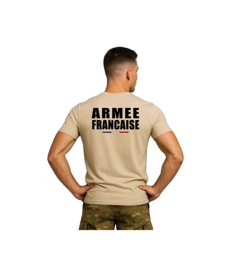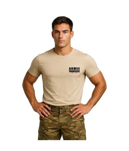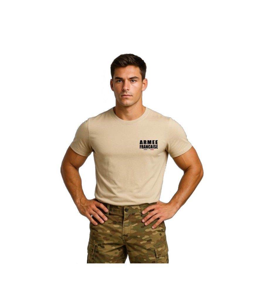 Découvrez notre tee-shirt sable avec marquage "Armée Française" sur le devant et le dos. Fabriqué en coton de haute qualité avec un grammage de 190 g, ce tee-shirt allie confort et durabilité.