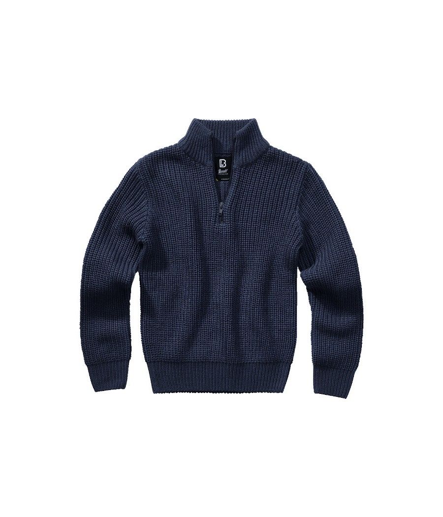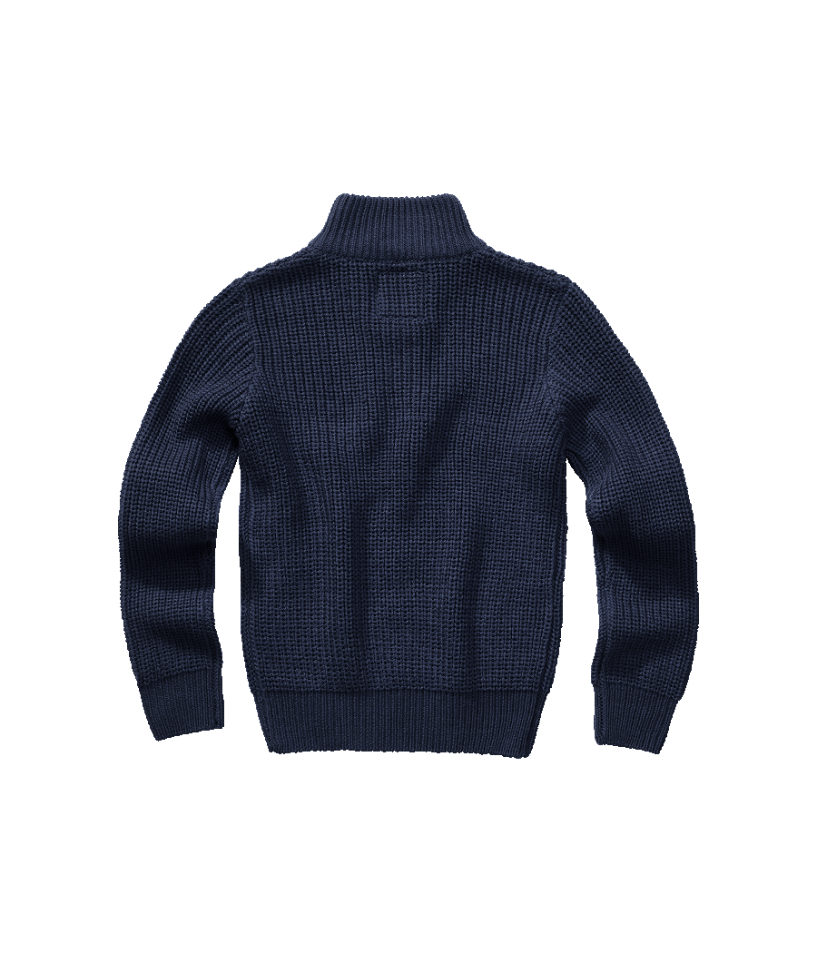 Le pull marin Troyer de couleur marine est un pull intemporel pour enfants en matière tricotée élastique.
