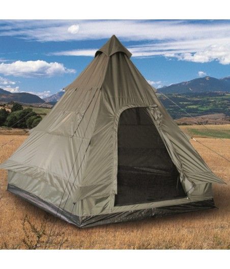 Cette tente pyramidale de style Tipi possède un espace confortable pour 4 personnes. Elle possède également une large ouverture ainsi que des fenêtres d'aération. La tente tipi pourra se mettre dans votre jardin ou sur un terrain durant la période estivale.