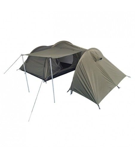 La tente 3 places offre un espace de rangement dans l´entrée suffisamment grand pour accueillir ustensiles de cuisine, réfrigérateur et bagages etc... La porte d´entrée est transformable en pare-soleil.