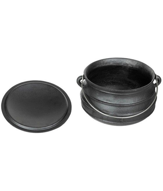 Le disque central en acier inoxydable est conçu pour accueillir des branches d’un diamètre maximal d’environ 3,5 cm. La chaîne d’environ 100 cm permet d’ajuster facilement la hauteur de cuisson selon l’intensité du feu.