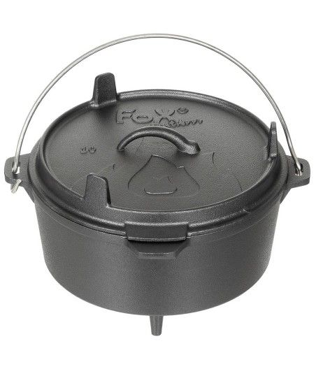 Cocotte en fonte Dutch Oven avec couvercle et pieds, idéale pour la cuisine au feu de camp lors de bivouacs, sorties bushcraft ou campements en pleine nature. D’une capacité d’environ 3,8 litres, cette cocotte robuste permet de préparer facilement des plats mijotés, des soupes ou du pain directement sur les braises. Son couvercle peut également être utilisé comme poêle pour une cuisson polyvalente. Grâce à ses trois pieds et à son anse pliable, elle peut être posée sur les braises ou suspendue à un trépied de cuisson. Solide et durable, la fonte assure une excellente diffusion de la chaleur pour une cuisson homogène sur le terrain.