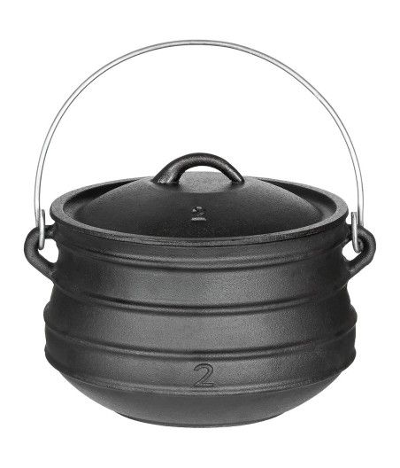 Grâce à sa fabrication en fonte, elle offre une excellente répartition de la chaleur et permet une cuisson lente et homogène. Elle est idéale pour préparer des soupes, des plats mijotés ou des ragoûts directement sur les braises ou suspendue à un trépied de cuisson.