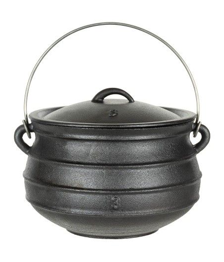 Fabriquée en fonte, cette marmite offre une excellente répartition de la chaleur et permet une cuisson lente et homogène. Elle est idéale pour préparer des soupes, des ragoûts ou des plats mijotés directement sur les braises ou suspendue à un trépied de cuisson.