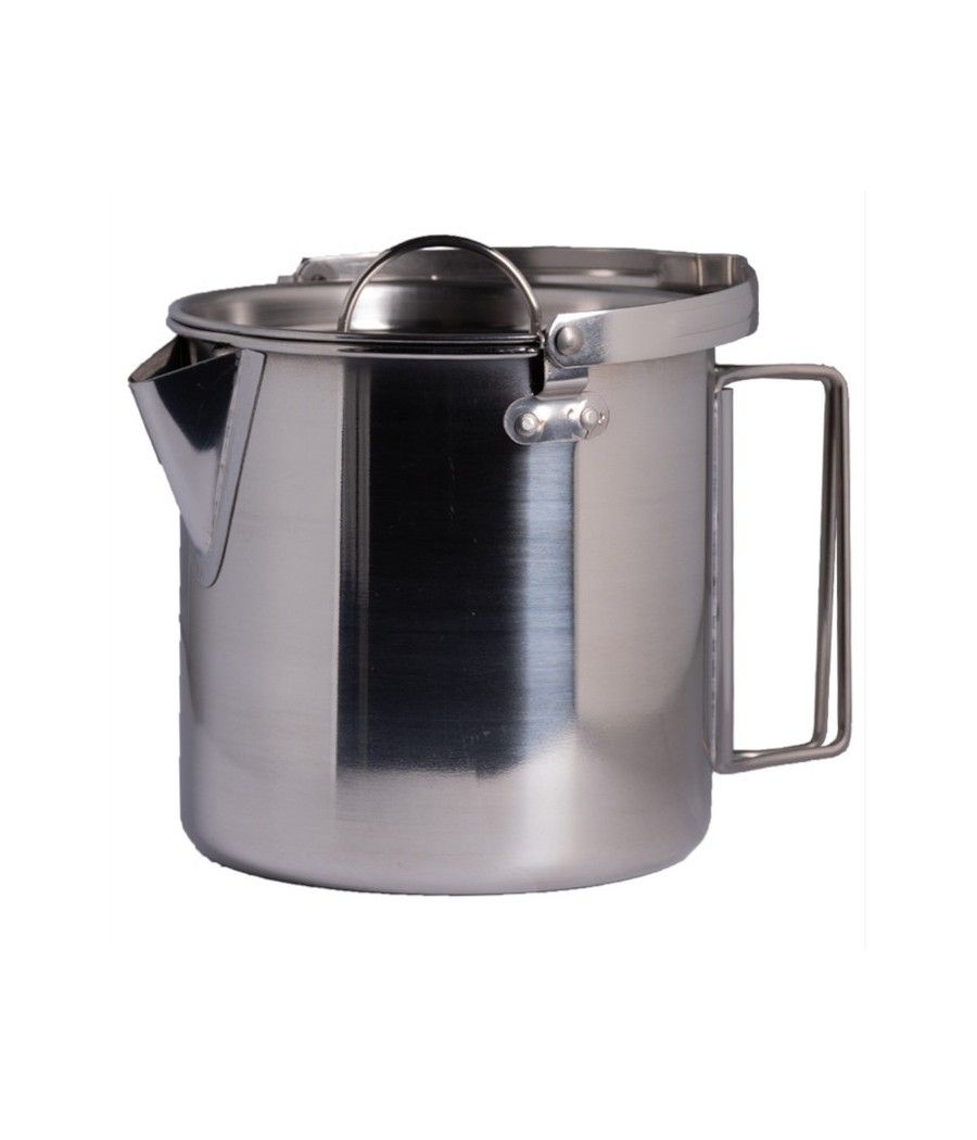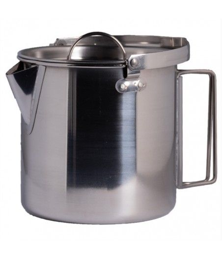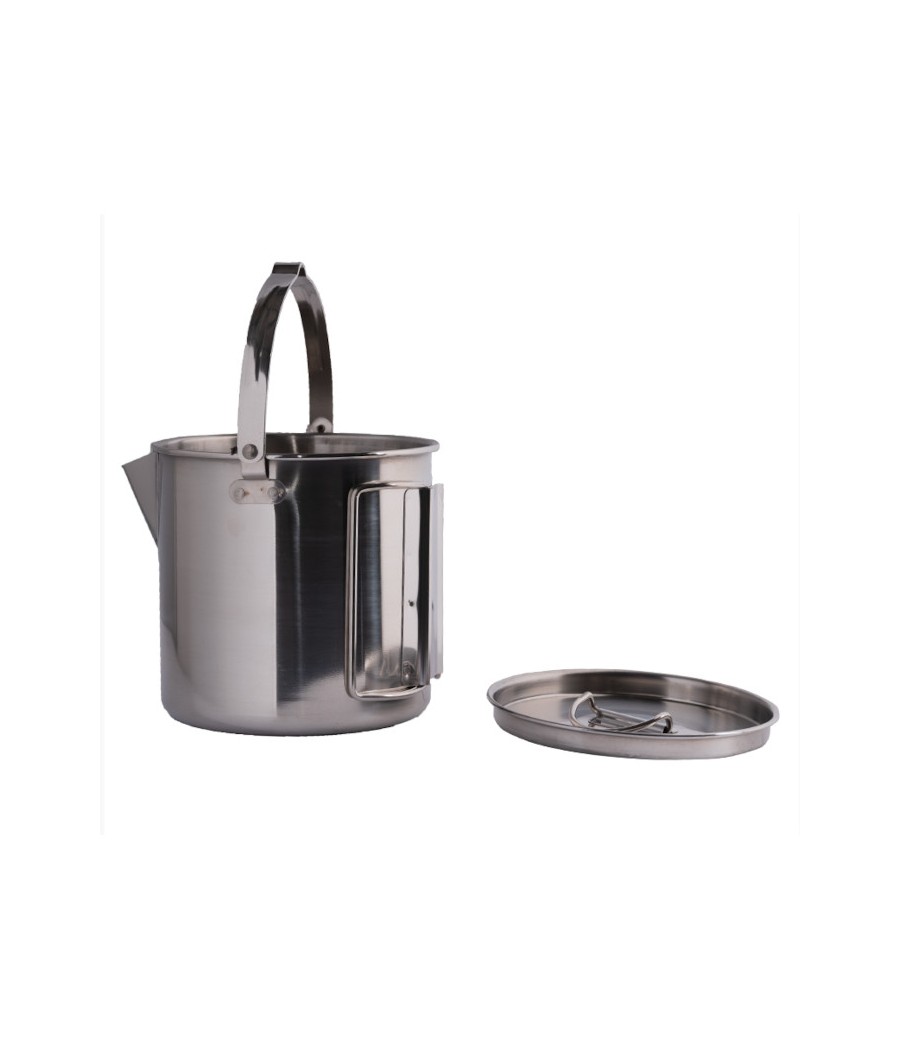 Le pichet en inox de 700 ml est robuste avec son bec verseur anti-gouttes. Il possède en outre, une anse rabattable très pratique pour le suspendre au-dessus d'un feu.