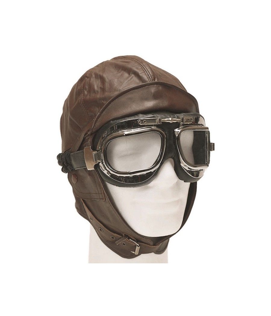 Le casque de pilote en cuir marron est une réplique du véritable casque de pilote.