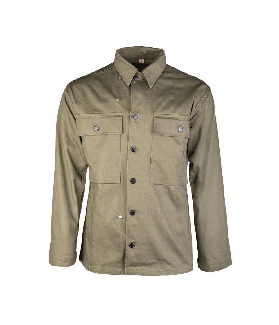 La chemise US HBT OD est une reproduction destinée à l'armée américaine durant la seconde guerre mondiale WW2. Cette chemise us permettra de compléter votre tenue pour la reconstitution historique.