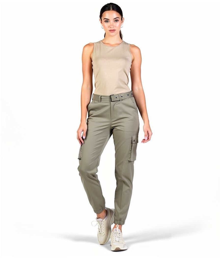 Le pantalon militaire kaki pour femme est un pantalon cargo militaire élégant. Il possède une coupe haute pour créer une silhouette féminine. De plus, ce pantalon est livré avec une ceinture cloutée.