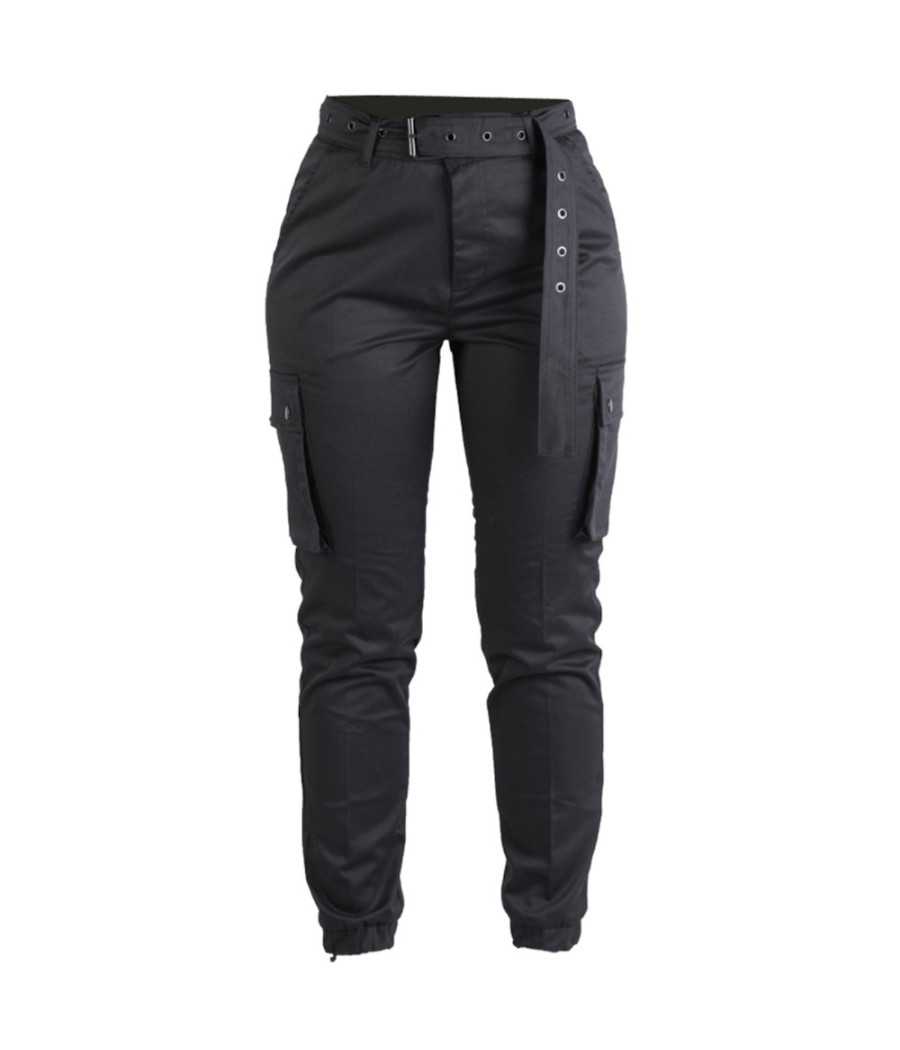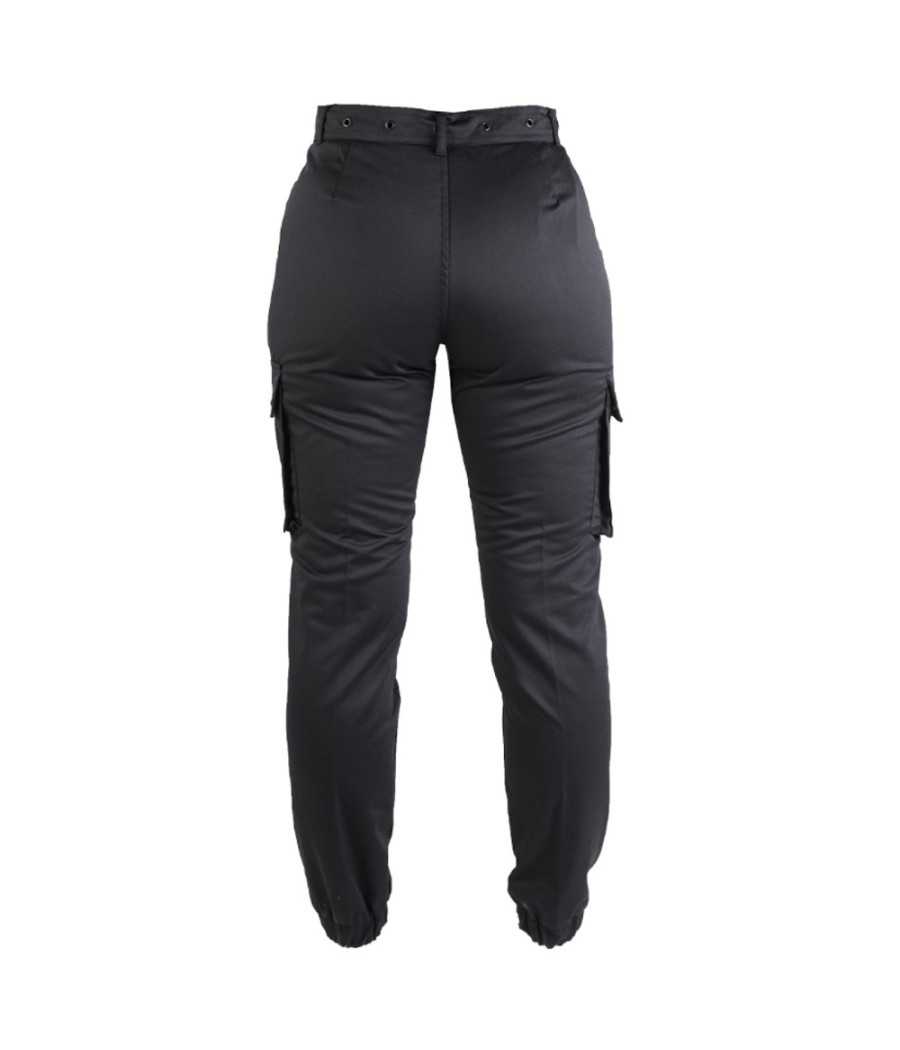 Le pantalon militaire noir pour femme est un pantalon cargo militaire élégant. Il possède une coupe haute pour créer une silhouette féminine. De plus, ce pantalon est livré avec une ceinture cloutée.