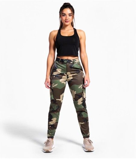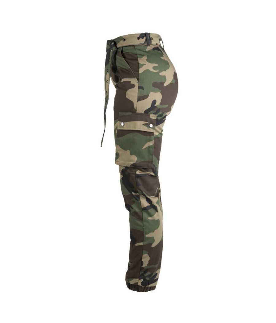 Le pantalon militaire woodland pour femme est un pantalon cargo militaire élégant. Il possède une coupe haute pour créer une silhouette féminine. De plus, ce pantalon est livré avec une ceinture cloutée.