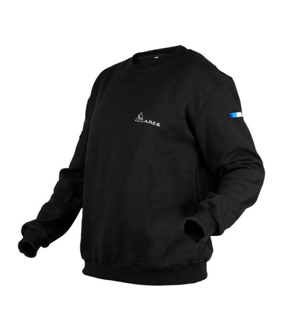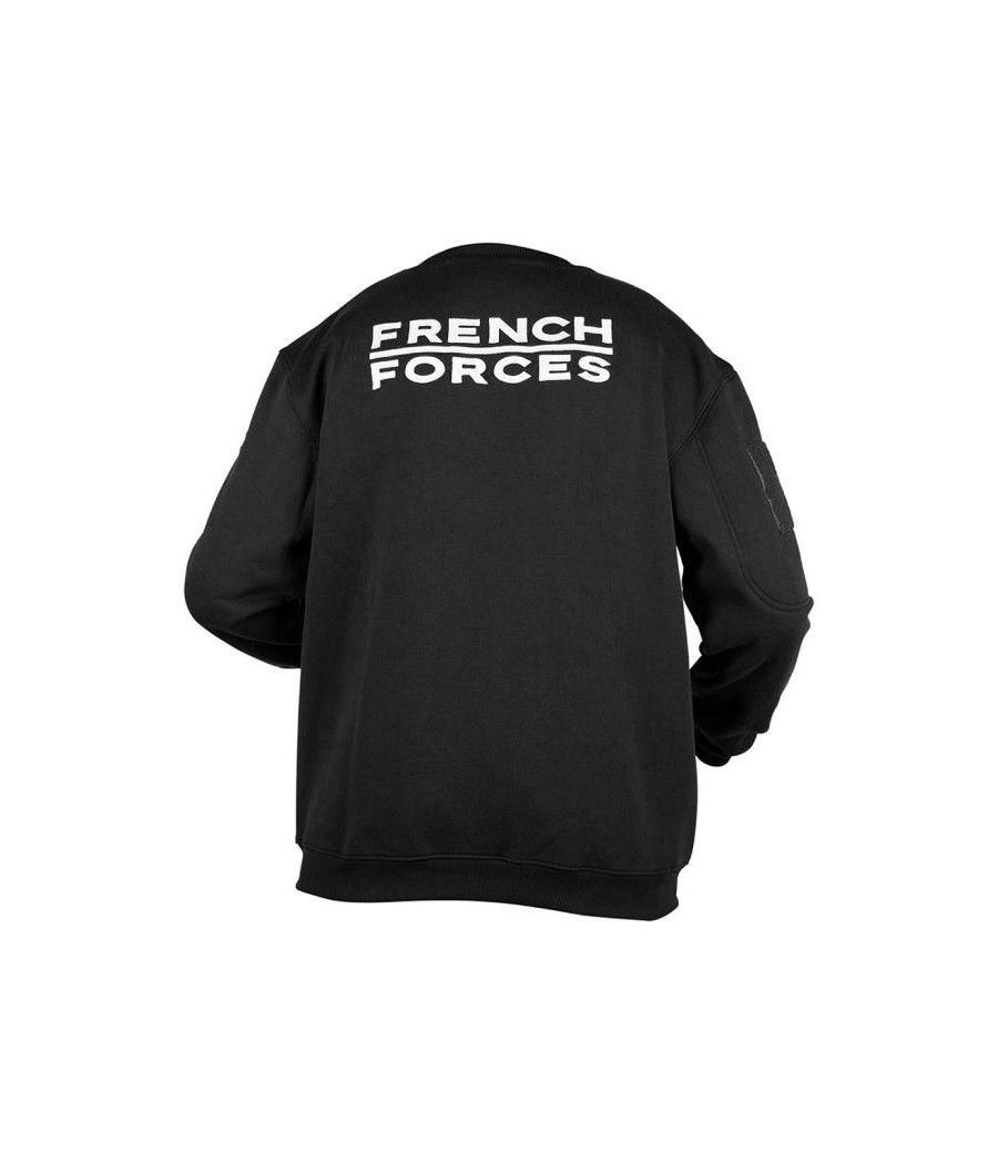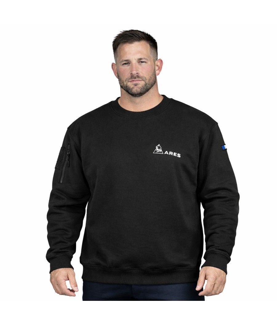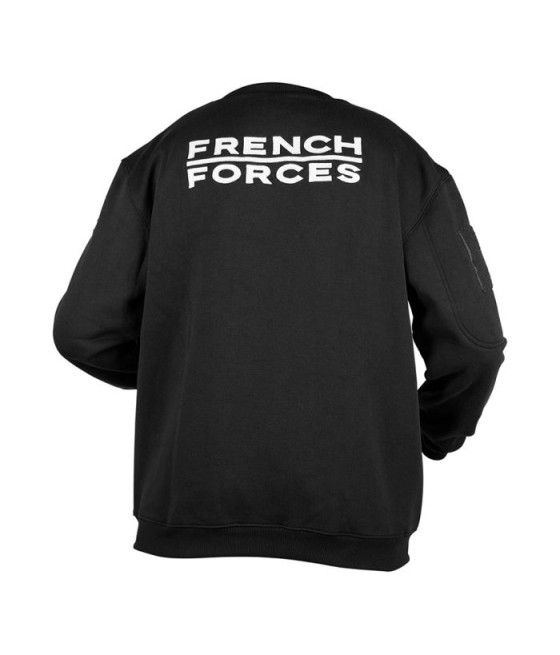 Ce sweat-shirt noir ARES en polycoton allie durabilité et confort. Brodé "FRENCH FORCES" au dos et marqué du drapeau français sur la manche gauche, il arbore le logo ARES sur la poitrine. Équipé d’une poche zippée et d’un carré auto-aggripant sur la manche droite, il permet une personnalisation facile avec écussons ou patchs.