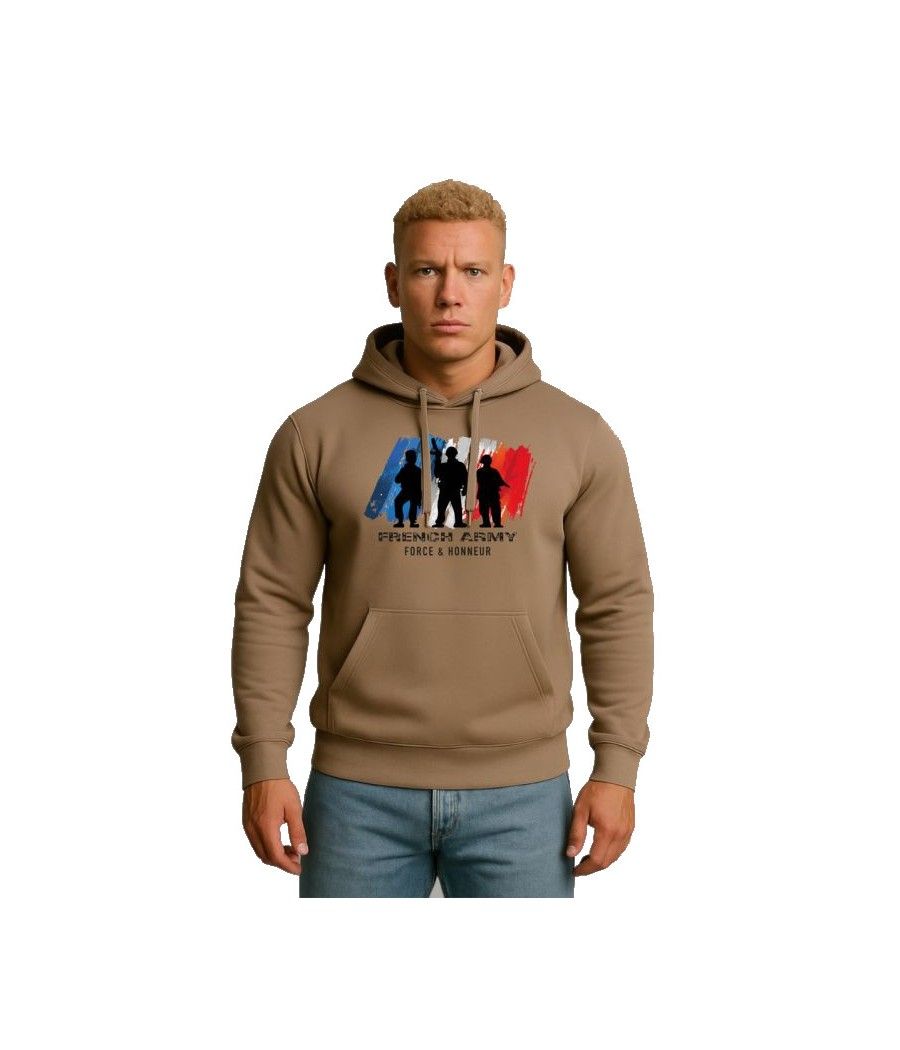 SWEAT SHIRT À CAPUCHE MOKA FRENCH ARMY FORCE ET HONNEUR