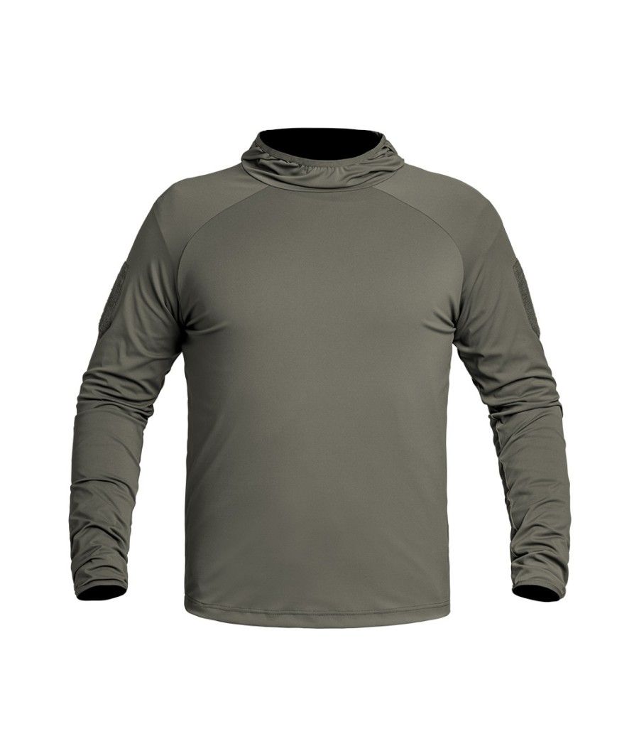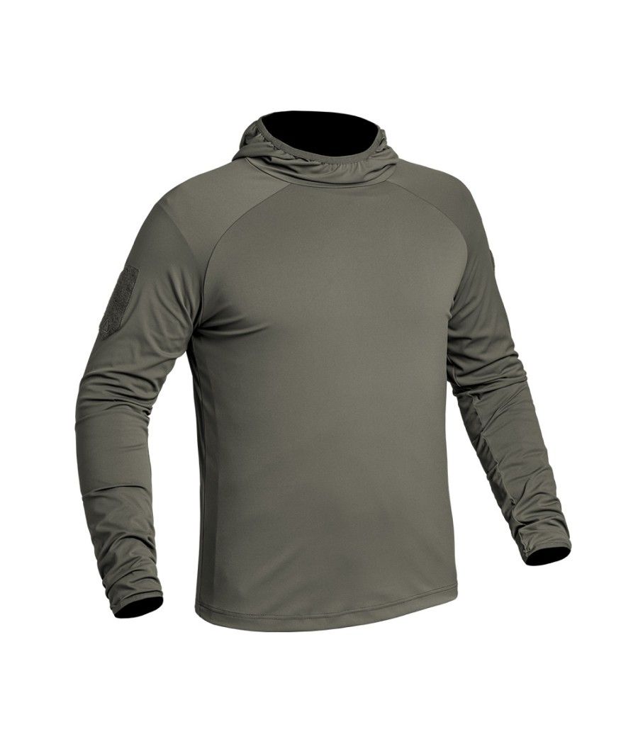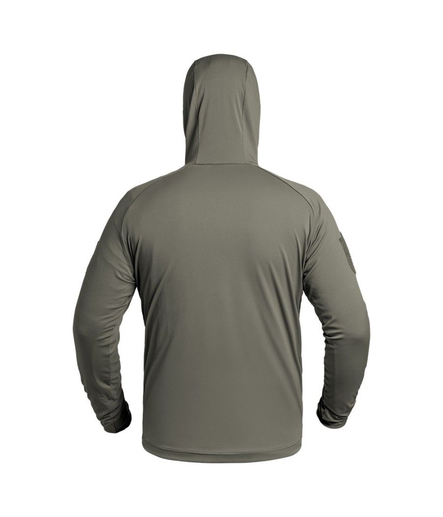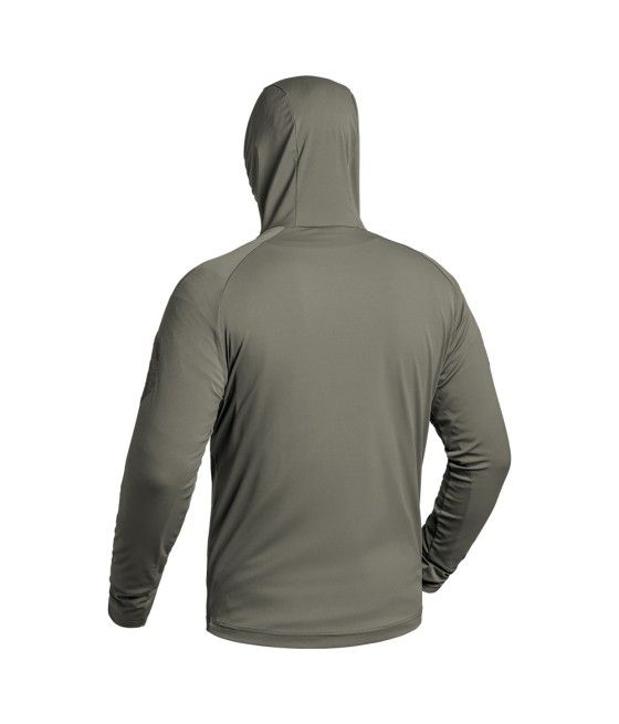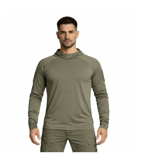 Le sweat-shirt à capuche Instructor de couleur olive est fabriqué en tissu stretch X-MOVE 360, offrant une légèreté et un ajustement parfait pour une liberté de mouvement totale.